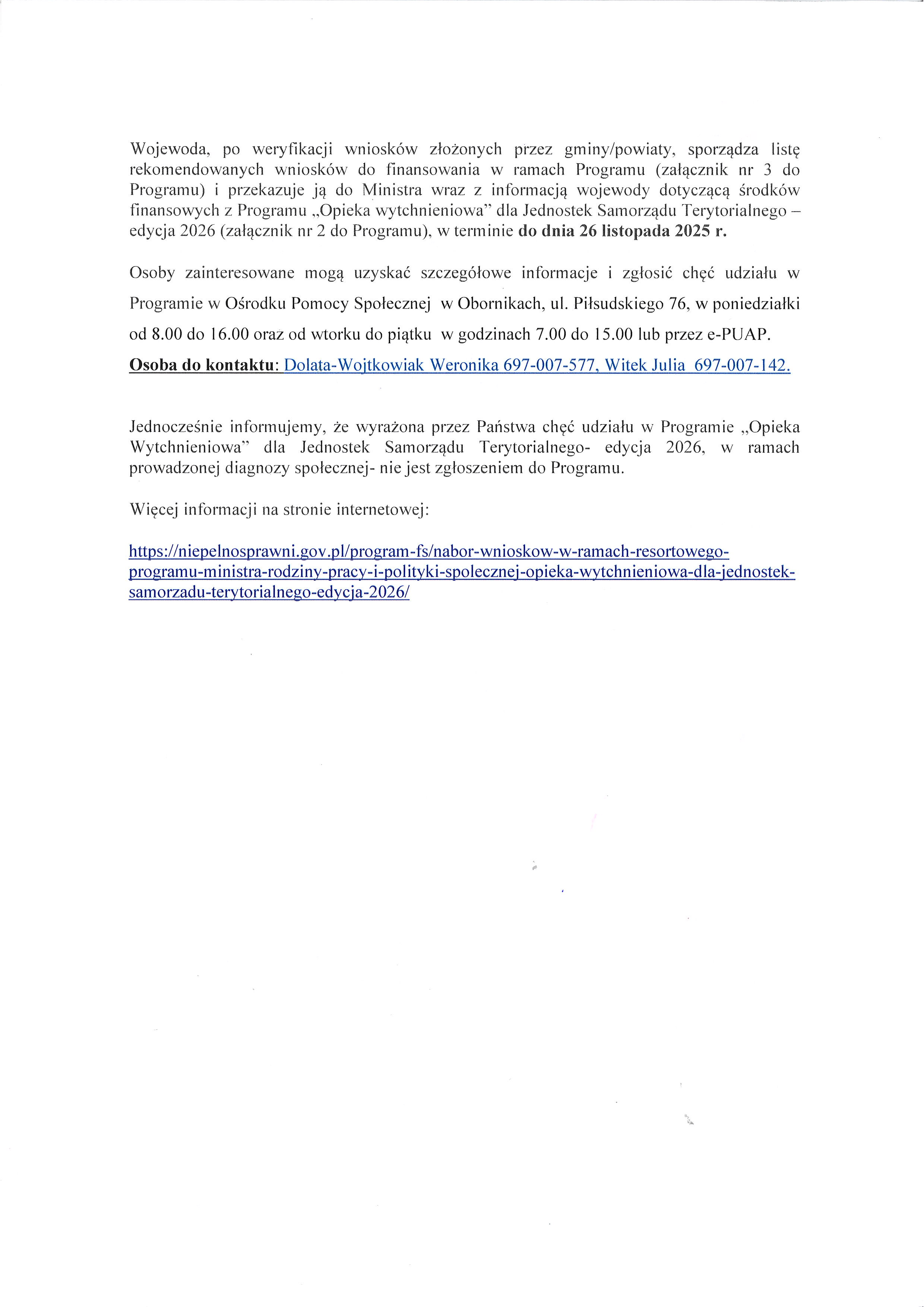 Opieka wytchnieniowa – edycja 2026 w Gminie Oborniki